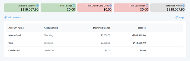 See your Available Balance, Savings, Debts, and Total Net Worth at a glance.