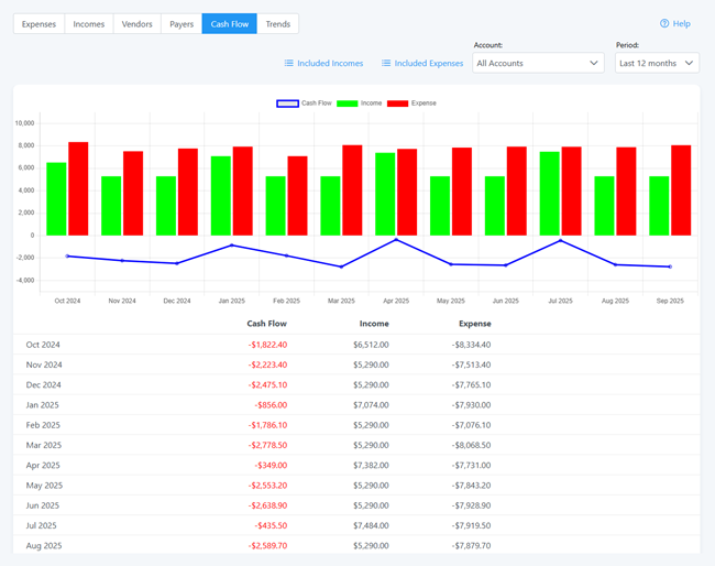 Discover where your money goes with insightful reports on expenses, income, vendors, payers, and cash flow.